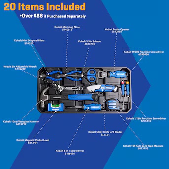 Kobalt 20 -Piece Blue Household Tool Set with Hard Case $29.98