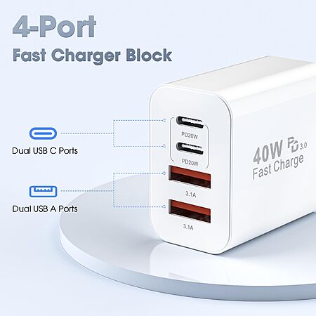 2-Pack WWB 4-Port USB Wall Charger (40w Max, 20W PD) $10 @ Amazon