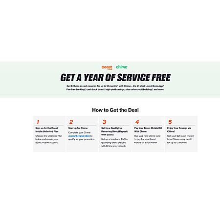 Boost mobile 0$ Unlimited service if you create Chime account and direct deposit $500 per month
