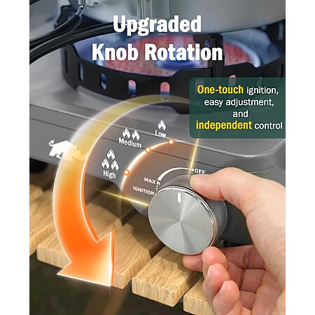 - Dual-Mode High Power: Infrared & open flame modes, 30,000 BTUs total; each burner controlled independently for versatile cooking.
