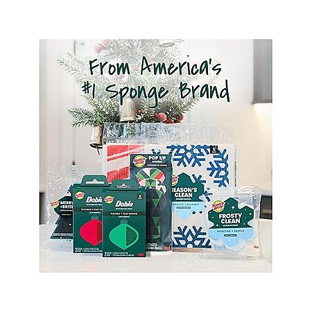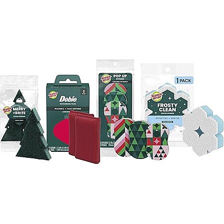$5.99 | Scotch-Brite Merry + Brite Holiday Collection, 3 Pop-Up Sponges, 1 Heavy Duty Christmas Tree Sponge, 2 Scrubbing Pads, 1 Snowflake Sponge at Woot!