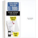 Five Star 1-Subject College Ruled Spiral Notebook (White, 100 Sheets) $2 + Free Shipping w/ Prime or $35+
