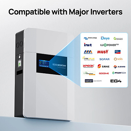 ECO-WORTHY 5.12kWh 48V 100Ah Wall-Mount Battery + 5kW 48V-120V Inverter $1024 + Free Shipping