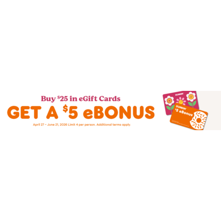 $25 Dunkin' Donuts eGC + $5 Dunkin' Donuts Bonus eGC