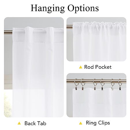 - Ready Made: 2 panels sheer curtains per package. Each panel is 52" wide and 84" long when hanging as a flat. The inner diameter of the rod pocket and each back tab is 3.7", which makes the curtains are easy to install and move.