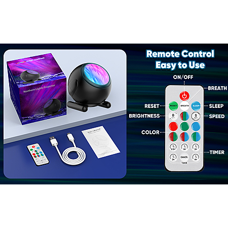 Proran LED Night Light Aurora Projector w/ Timer & Remote (Black) $8.49 + Free Shipping w/ Prime or on $35+
