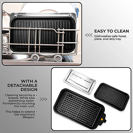 - Low-Smoke Design: An optimized smokeless design effectively reduces smoke production, enhancing the indoor grilling experience in apartments or enclosed kitchens.