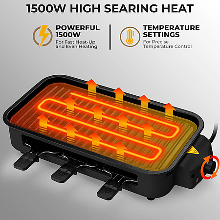 - Efficient Heating: Powered by 1500W, the system heats quickly and maintains consistent temperatures for even cooking of various foods like burgers, steak, and shrimp.