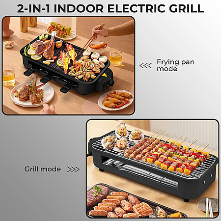 Key item features- Versatile Cooking: This 2-in-1 electric indoor grill and griddle allows for cooking meat, seafood, vegetables, and breakfast foods with reduced smoke, ideal for home kitchens and apartments.