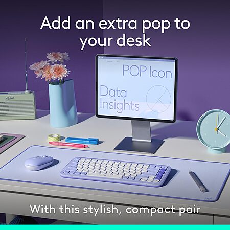 Amazon.com has Logitech POP ICON Combo, Bluetooth Keyboard and Mouse Combo, Comfortable Typing, programmable Keys and Buttons, Quiet clicks, Easy-Switch up to 3 Devices - Lilac on sale for $40.