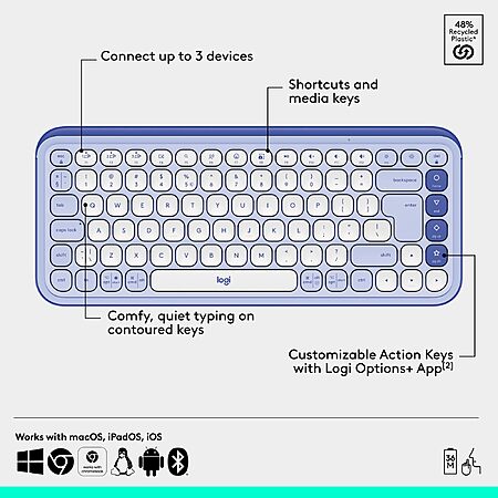 - Easily Hop Across 3 Devices: Connect with Bluetooth to up to 3 wireless devices across OS (Windows, macOS, iPadOS, iOS [3], ChromeOS) and switch between them with a press of the Easy-Switch button