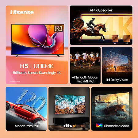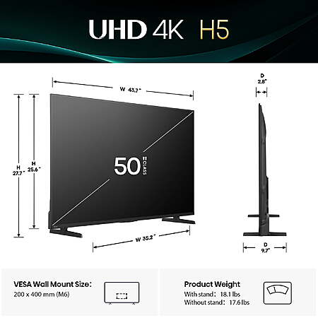 Model: Hisense 50-Inch Class H5 Series 4K UHD HDR Google Smart TV (50H5BG, 2025 Model) - Dolby Vision Gaming, HDR 10, Motion Rate 120, AI Upscaler, DTS Virtual X, Game Mode Plus, Google Assistant Built-In