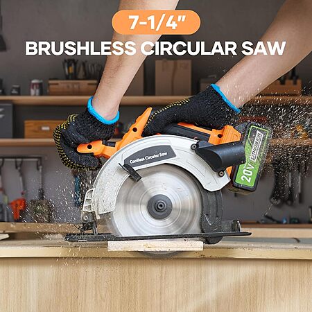 20V 7-1/4-inch Cordless Circular Saw, 4.0Ah Battery Powered Brushless Motor, 45° Bevel Capacity, Max Cutting Depth 2-7/10-inch (90°), 2-inch (45°) $48.99
