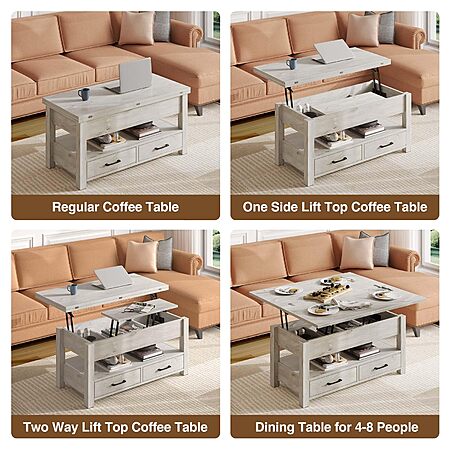 Rolanstar Multi-Function Lift Top Coffee Table w/ Drawers (Grey) $149.99 + Free Shipping