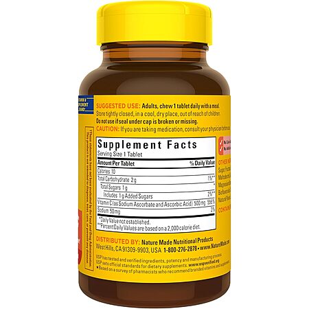 60-Count Nature Made Chewable Vitamin C 500mg Tablets $3.19 w/ S&S + Free Shipping w/ Prime or on $35+