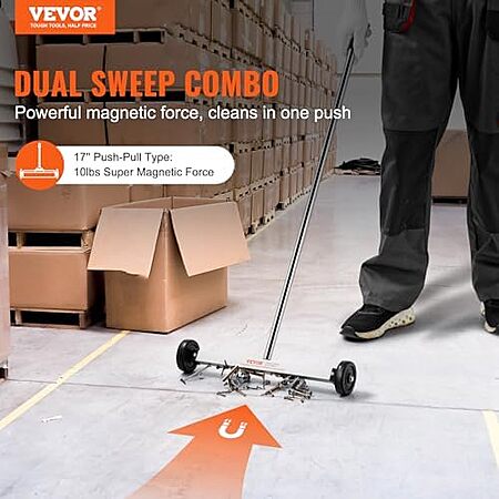 Amazon.com has VEVOR Magnetic Pick Up Sweeper 17-inch Heavy Duty Magnet Pickup Lawn Sweeper Roofing Tools, 10 Lbs Yard Magnet with Telescoping Holder and Wheels to Pick Up Nails Magnetic Sweeper for Construction on sale for $14.36.
