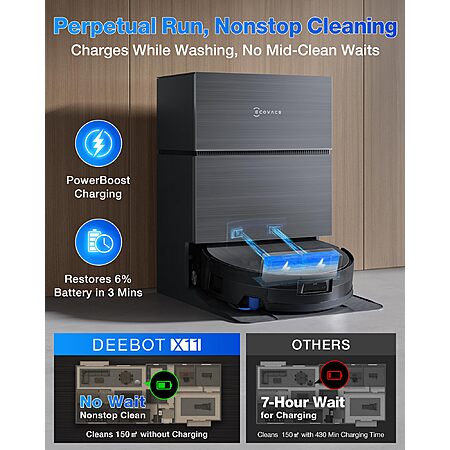 Amazon.com has ECOVACS DEEBOT X11 PRO Omni Robot Vacuum and Mop, 19,500Pa Blast Suction, Instant Self-Cleaning Roller Mop, Zero-Tangle, Auto-Lift Mop for Carpet & Spill Protection, GaN Fast Charging for Large Homes on sale for $799.