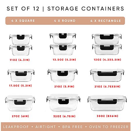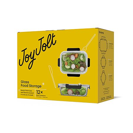 $32.21 | 24-Piece JoyJolt JoyFul Borosilicate Glass Airtight Food Storage Containers w/ Lids(Black) at Amazon