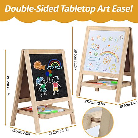Tabletop Painting Wooden Art Easel for Kids - 4-in-1 Double-Sided Drawing Board $14.99