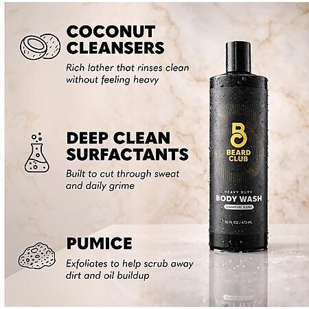 The Beard Club Mens Body Wash – Heavy Duty Shower Gel for Men with Exfoliating Clean, Rich Lather & Signature Scent – 16 fl oz $6.01