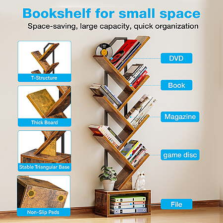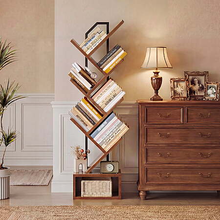 | Product Description: | This modern bookshelf features a sleek tree-branch design that blends with various home decor styles. Its multi-tier structure provides ample storage for books, magazines, CDs, decorations, and more. With its compact yet spacious design, it maximizes vertical space, making it ideal for small rooms, offices, and corners. Crafted from durable materials with reinforced panels, this bookcase ensures stability and long-term use. The waterproof surface allows for easy cleaning, and assembly is simple with included instructions and tools. Whether for organizing or displaying, this bookshelf adds both function and style to any space. Different Spaces, Different Needs — We also offer a 8-tier version, designed to save space and fit perfectly in smaller rooms, apartments, or home offices. Same durability, with LED light and great value. Explore the with LED light option here:https://www.walmart.com/ip/Casacomoda-6-Tier-Tree-Bookshelf-Bookcase-LED-Lights-Display-Floor-Standing-Storage-Shelf-Book-Organizer-Shelves-Home-Office-Living-Room-Vintage/15674118497 Space-Saving & Stylish Design This uniquely designed bookshelf maximizes vertical space while adding a modern touch to your home decor. Its compact structure fits perfectly in small rooms, offices, and corners, making organization effortless. Sturdy & Multi-Tier Storage Crafted from durable materials with reinforced board, this bookshelf offers strong support and multiple open shelves for books, magazines, video games, and decorations, keeping your space neat and organized. Easy Assembly & Maintenance The bookshelf comes with clear instructions, numbered parts, and all necessary tools for a quick setup. Its waterproof surface ensures easy cleaning, providing long-lasting functionality. |