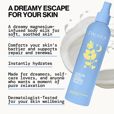 Pacifica Dream Milk Magnesium Spray for Sleep & Relaxation - Natural Magnesium Body Mist Infused with Lavender, Chamomile & Essential Oils 4 fl oz $8.99