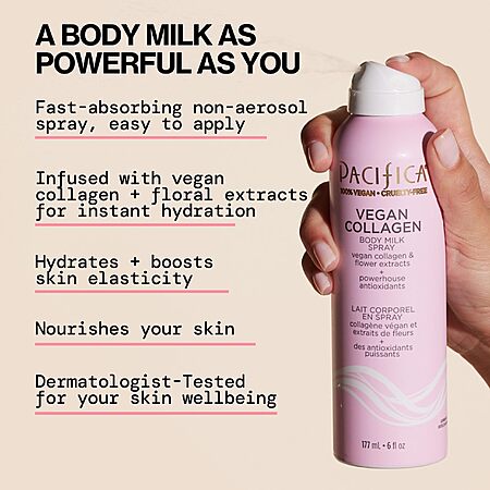 Pacifica Spray Lotion for Body - Vegan Collagen Body Milk Spray – Hydrating Moisturizer $6.99