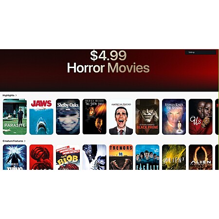 AppleTV $4.99 Horror Films: Parasite, Us, Alien movies, Scream movies; Jurassic World Trilogy $14.99 + lots more;