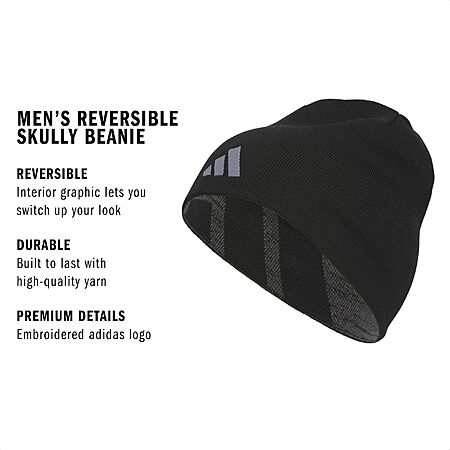 $13.10: adidas Reversible Skully Beanie – Two-Sided Skull Cap Winter Hat, Black/Black-grey Six Marl/Grey, One Size