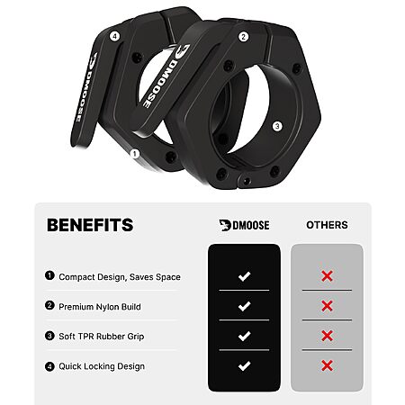2-Count 2" DMoose Olympic Barbell Clamps w/ Anti-Slip TPR Grip $11.30 + Free Shipping w/ Prime or on $35+