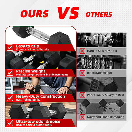 BalanceFrom Rubber Encased Hex Dumbbells, 15 lbs Pair, Black