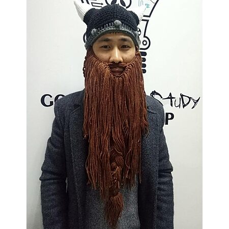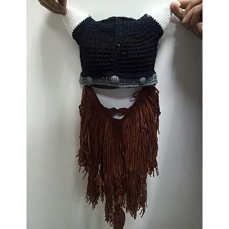 YEKEYI Viking Beard Beanie Horn Hat, Horn Dgray