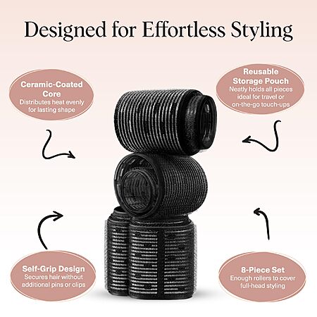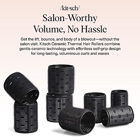 Kitsch Ceramic Hair Rollers for Women – Self-Grip Hair Curlers for Heatless Curl, Long-Lasting Volumizing Large Rollers for All Hair Types – Black, 8 Count (Pack of 1) $11.17