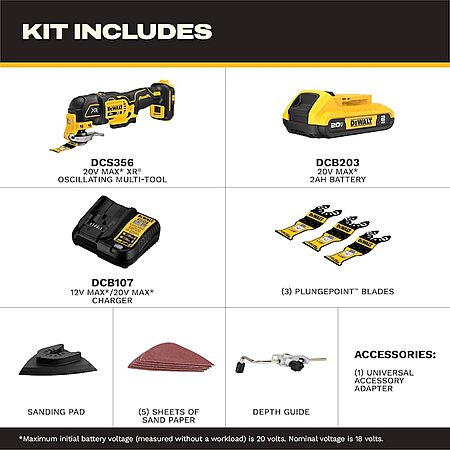 DEWALT XR 20-volt Max Cordless Brushless Variable speed 2 -Piece Oscillating Multi-Tool ( 1 -Batteries Included and Charger Included ) | DCS356D1 $119