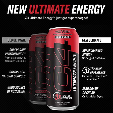 [SnS, AC] $10.25* | 12-Pack 16-Oz Cellucor C4 Ultimate Energy Drink (Fruit Punch) at Amazon (85.4¢ each)