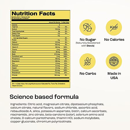 - Deliciously Refreshing Lemonade - Our bodies need more than just water to get pumped up, and an electrolytes powder is the key! It has no calories or sugar, perfect for fitness enthusiasts and active individuals. With its delicious lemonade flavor, you'll enjoy staying hydrated!