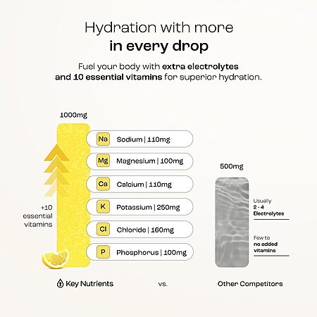 - Loaded with Key Nutrients - Refuel with our lemonade electrolyte powder, powered by 6 key electrolytes, including magnesium, potassium sorbate, and calcium. Our electrolytes powder also contain 10 vitamins to help you stay healthy and hydrated.